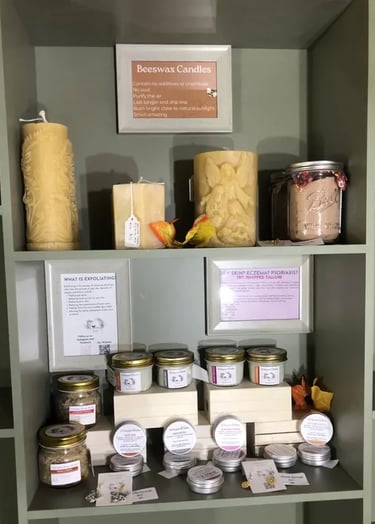 Our self-care products were developed out of a need for natural products. Our oldest child had eczema and never found relief for her itchy skin. We developed our whipped tallow to help her and fell in love. She has not had any eczema outbreaks since she started using it. Our friends have similar results. We went on to develop lip balm and have recently added beeswax candles to our store. All of our products are made on our farm using the best possible resources.