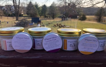 Our self-care products were developed out of a need for natural products. Our oldest child had eczema and never found relief for her itchy skin. We developed our whipped tallow to help her and fell in love. She has not had any eczema outbreaks since she started using it. Our friends have similar results. We went on to develop lip balm and have recently added beeswax candles to our store. All of our products are made on our farm using the best possible resources.